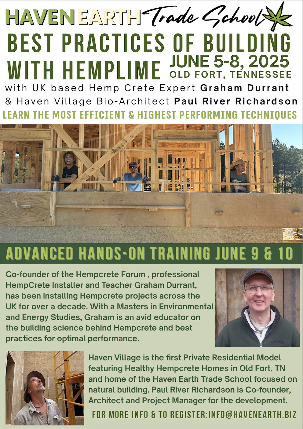 Join us Founder Bio-Architect and Hemp Builder Paul River Richardson, veteran UK-based hempcrete expert and founder of Hemp-Lime Spray and The Hempcrete Forum Graham Durrant to dispel some of the myths and provide the most valuable information on best practices for Hemp-crete installations and take you to the next level of Hemp building knowledge and its practical application with methods that create the highest performing bio-based living structures based on their combined decades of experience.
