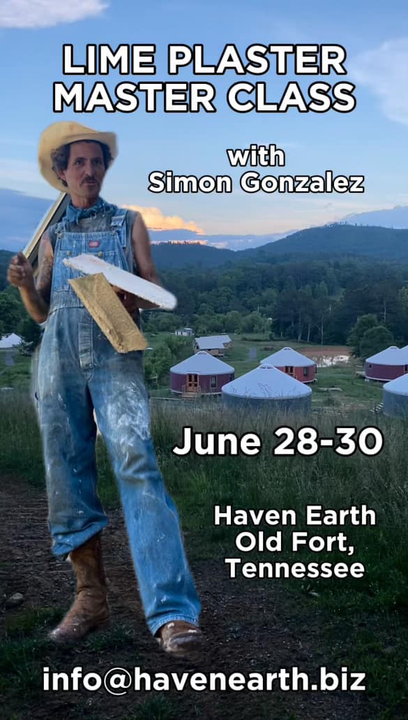 We are excited to welcome back Master Plasterer Simon Gonzalez who we hired to plaster our Tiny Hemp Home return again to Tennessee to plaster our Hemple. We are offering a special advanced class for those with previous experience in natural building to join us for three days to work directly with Simon to learn tips of the trade with first-hand application to this art form.