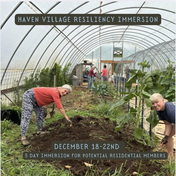The Resiliency Membership Immersion is a 5 day program for those serious about exploring potential residential membership at Haven Village. It is the first step to initiating the application process designed to answer all of your questions. Our time together includes all encompassing land and healthy hemp home tours, local field trips, shared farm-to-table meals, hands-on community projects, comprehensive presentations, opportunity to connect with others who could be your future neighbors and more.