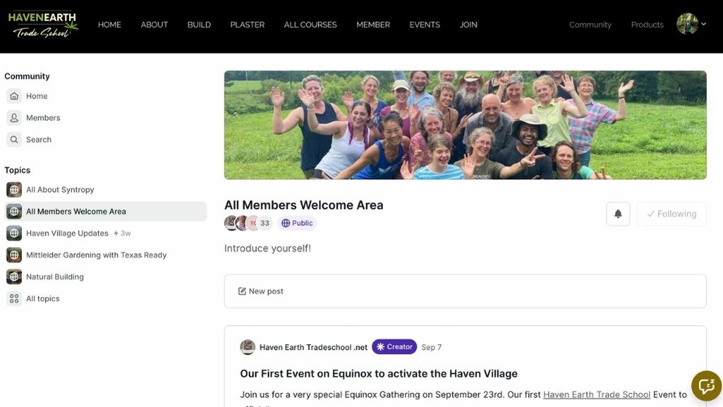 Haven Earth is a Private Membership Association (PMA) focused on Regenerative Solutions and helping those looking to Return to the Land with a focus on Hemp, Natural Building and Syntropic Community Development. Stay up to date with what is happening in Haven Village through our weekly posts, learn about upcoming events and connect with like-minded others.